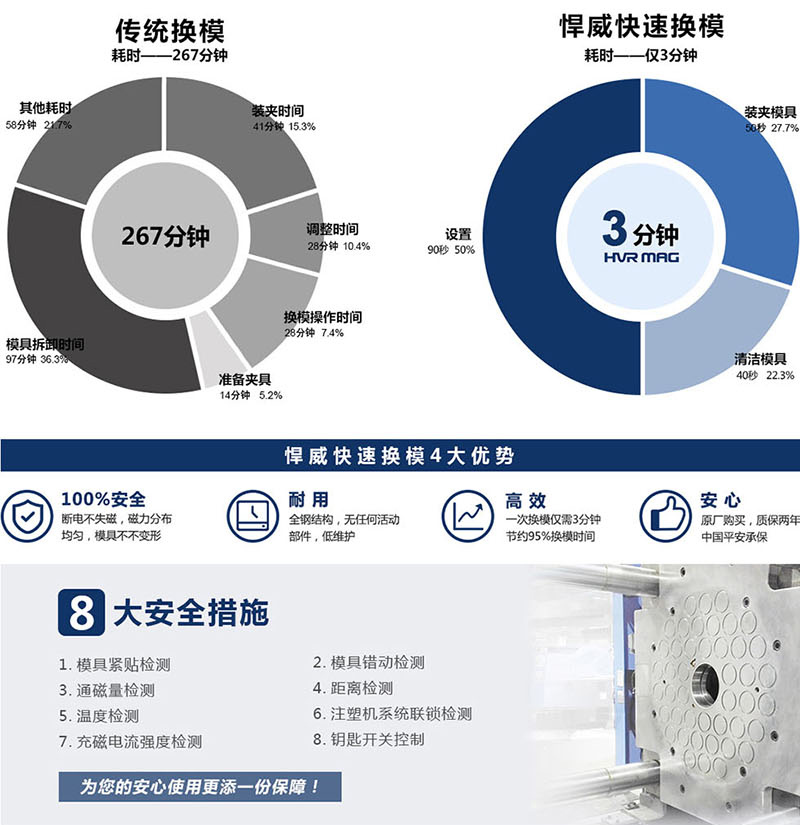 同時(shí)可以在磁盤上增加各種您所需要的設(shè)備∶定位裝置、沉孔、下模延伸板等都可以定制添加對于裝備有長條形模架的模具,HQMC磁盤上的磁極可設(shè)計(jì)為相應(yīng)的長條形,從而提供最佳的效果。